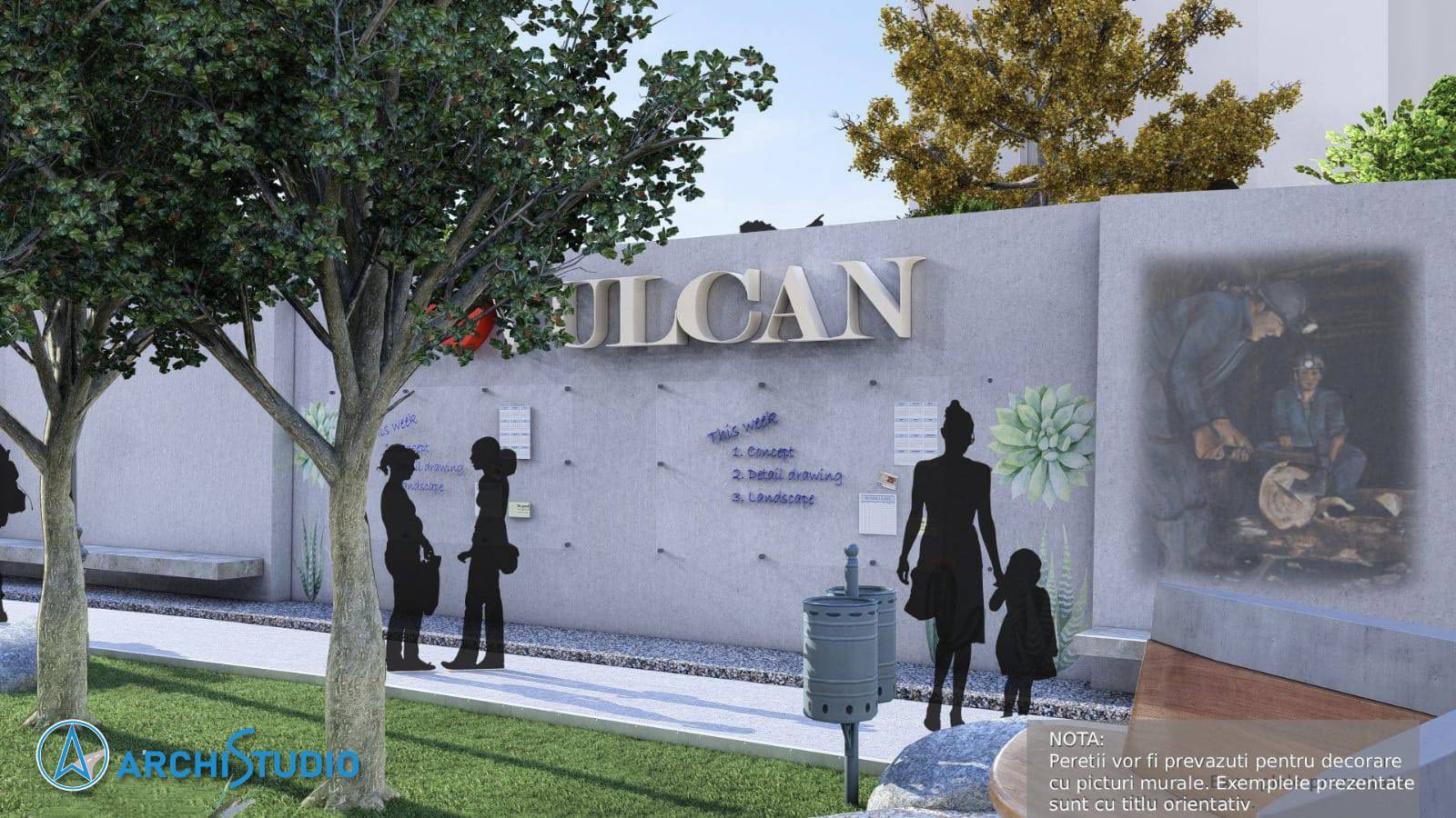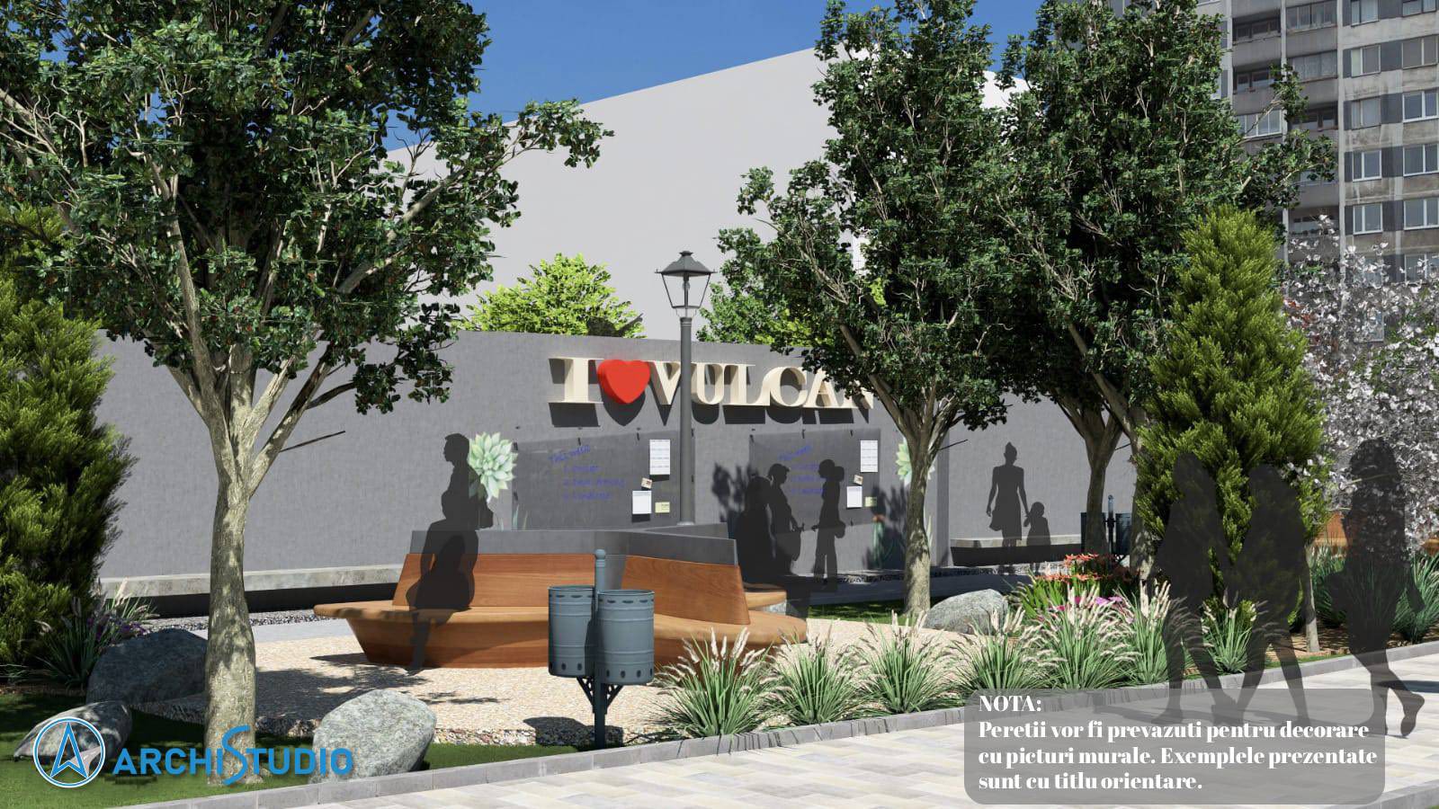 Se va amenaja zona centrală a municipiului Vulcan, respectiv spațiul public situat pe bulevardul Mihai Viteazu adiacent blocului F9 în imediata vecinătate a Pieței Centrale, a Primăriei Municipiului Vulcan și a Poliției Locale, cu front stradal la bulevardul Mihai Viteazu, strada Preparației și strada Aleea Muncii.
